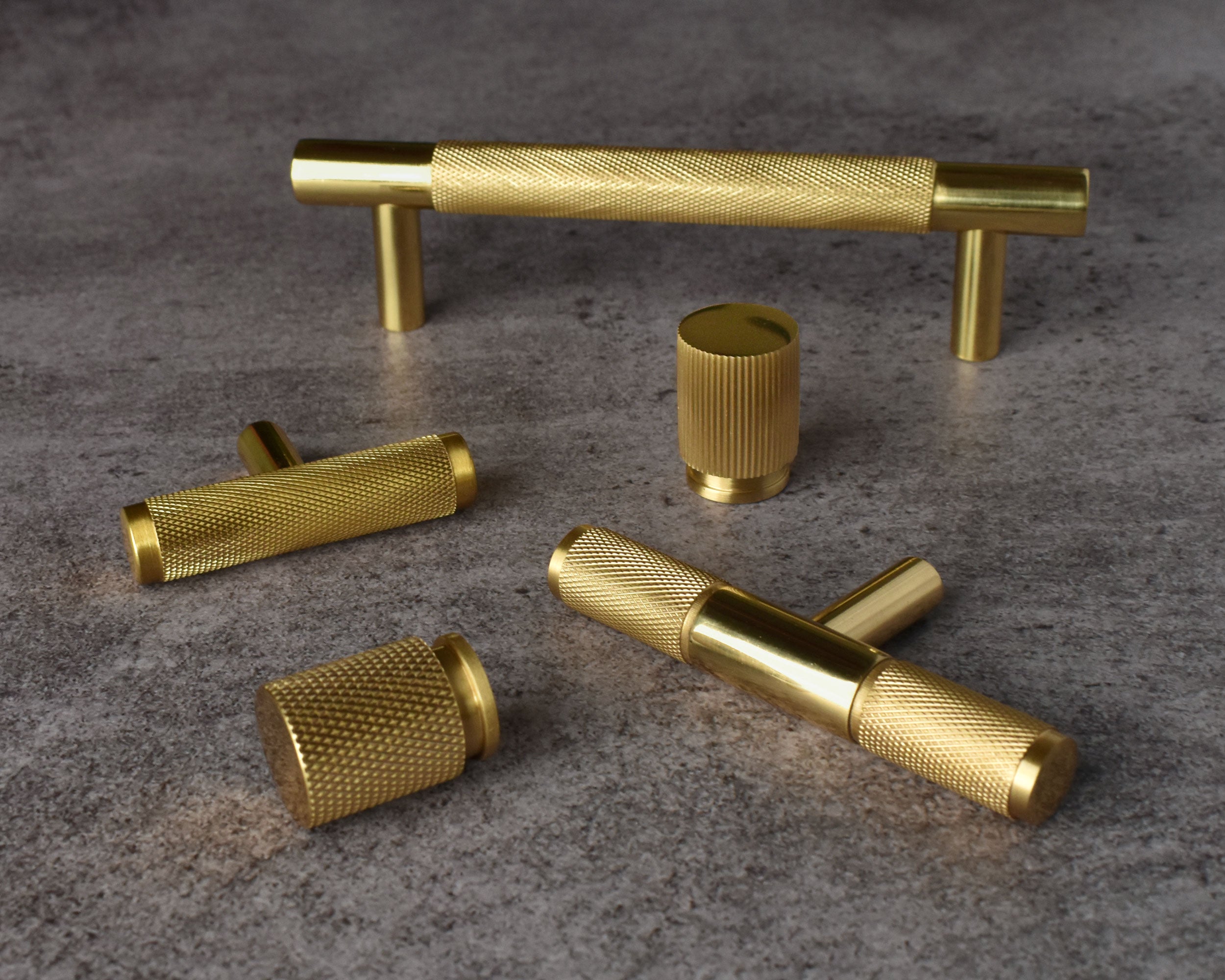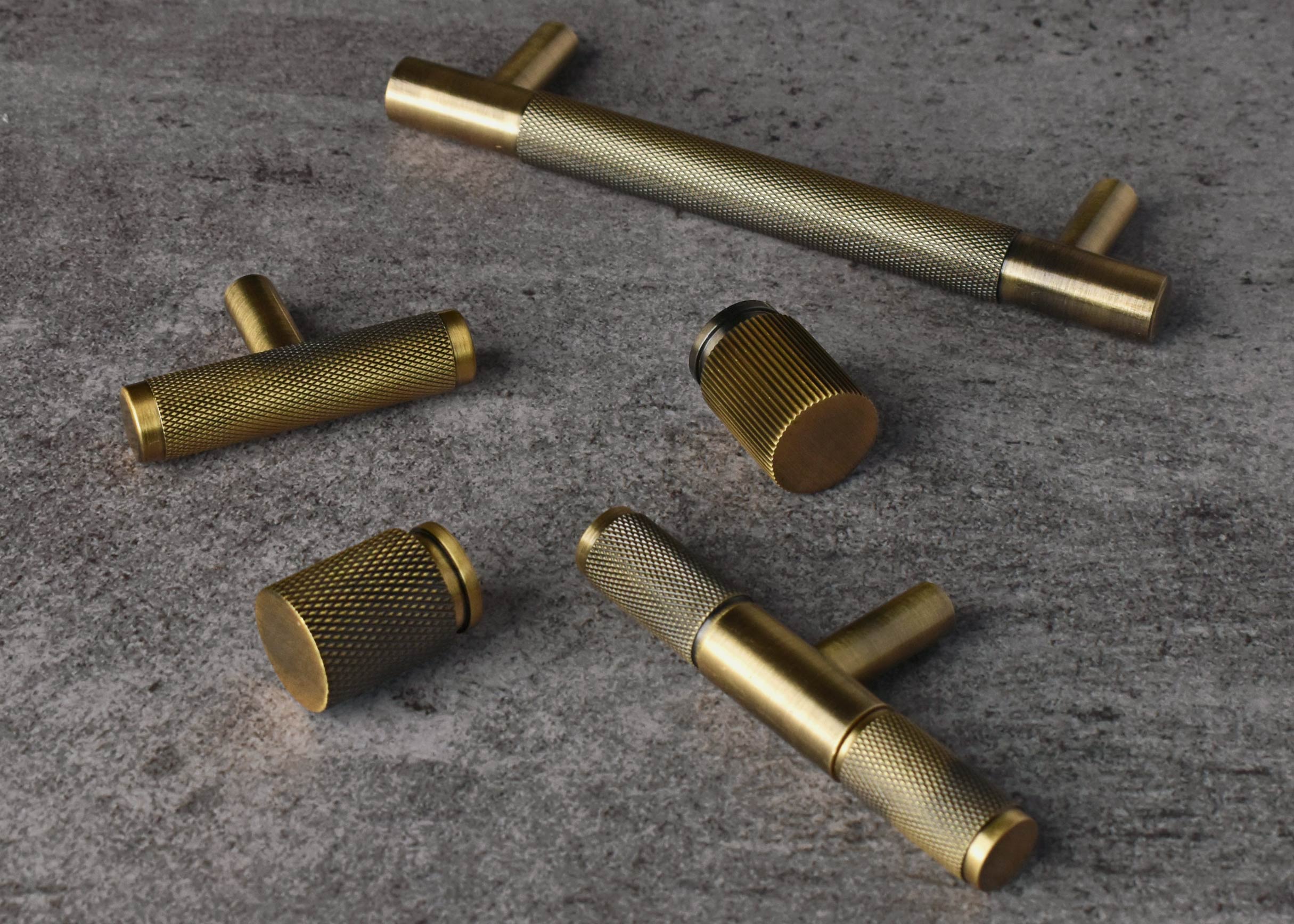 Cleopatra T Bar Solid Brass Knurled Cabinet Drawer Knob Pull