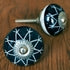 Black ceramic knob with a crosshatch abstract motif. This drawer knob is perfect for kitchen cabinets, dressers, side tables, wardrobes and cupboards. The price listed is for 1 piece.