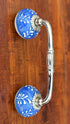 Zava Blue Ceramic Knob Silver Cabinet Door Handle and Pull