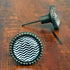 Striking black zigzag artwork underneath a crystal glass top and on top of a cast iron base. With their timeless design and high-quality construction, these metal glass knobs are sure to become a cherished addition to your home decor for years to come. Use them to update your kitchen cabinets, dressers, or any other furniture that needs a touch of personality and style. The price listed is for a single piece.