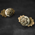 Ceramic dresser drawer knob and pull in a cracked finish with an antique iron backplate and brass filigree. Each knob features a unique crackled white texture and finish that will elevate your home decor. The smooth and glossy surface of the ceramic material creates a clean and elegant look. These rustic and vintage knobs will add a touch of elegance to your kitchen cabinets, chest of drawers and cupboard dressers.