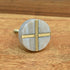 Brown stone drawer knob with brass inlaid cross pattern. These beautiful knobs are perfect for kitchen cabinets, cupboards and dresser drawers.