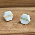 White hexagonal stone drawer knob with brass inlay. These beautiful knobs are perfect for kitchen cabinets, cupboards and dresser drawers.